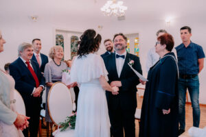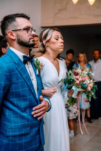 Profesjonalna fotografia podczas samej ceremonii – od chwili mojego wejścia, poprzez wymianę przysiąg, po pierwszy pocałunek jako małżeństwo. Uchwycę zarówno duże gesty, jak i subtelne emocje – wasze i waszych gości.